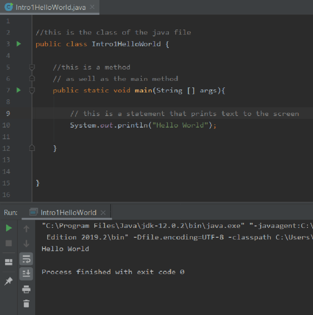 - public class Intro1HelloWorld {